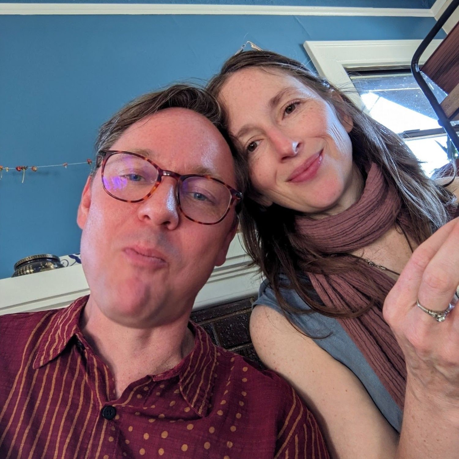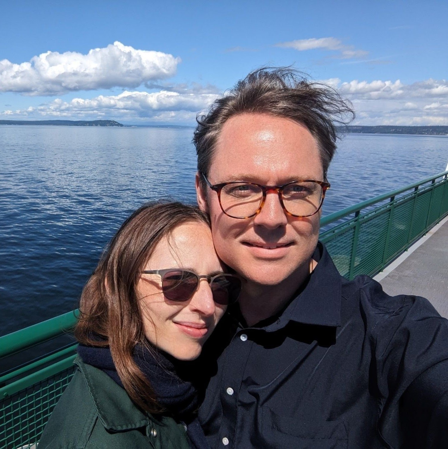 Our relationship officially began two years ago, but it was decades in the making! For much of our lives, we were living somewhat parallel to each other - so close to each other in Sarasota, both living in the Northeast in the late 00s/early teens, and moving to Seattle within a few months of each other in 2013. We spent 10 years just a few buildings away from each other at UW. But it gets weird and magical! We can pinpoint early connections in Sarasota, like when Michael had a recurring dream around 1989 where he was looking for something where Erin was living at the time! When Bumble finally brought us together, it didn’t take long before we knew we were super in love and aligned in all the ways that matter (and lots that don’t!).